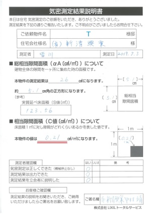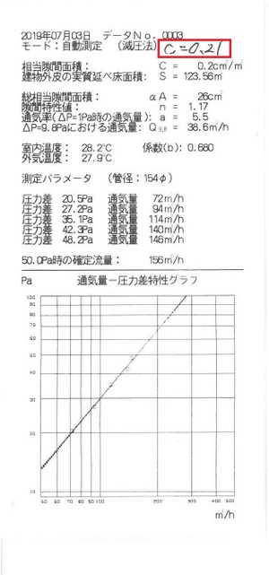 気密測定の結果は??2019.07.08