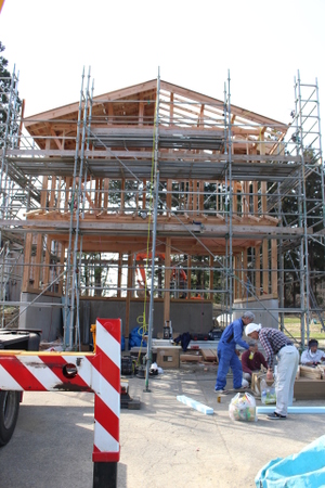 足場が組まれたのち、 いよいよ大工さんの手で 柱、梁が組み上げられていき、 無事に棟上げを迎えました その後、屋根が造られていきます。 下地となる板を打ち付けているところですね 目の眩むような高さ!! 高所が苦手な私には […]