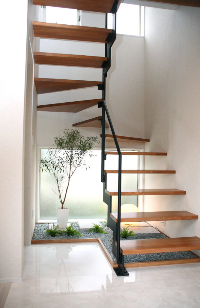 • 玄関ホールの階段下に窓を設け、採光と癒しのスペースを創出